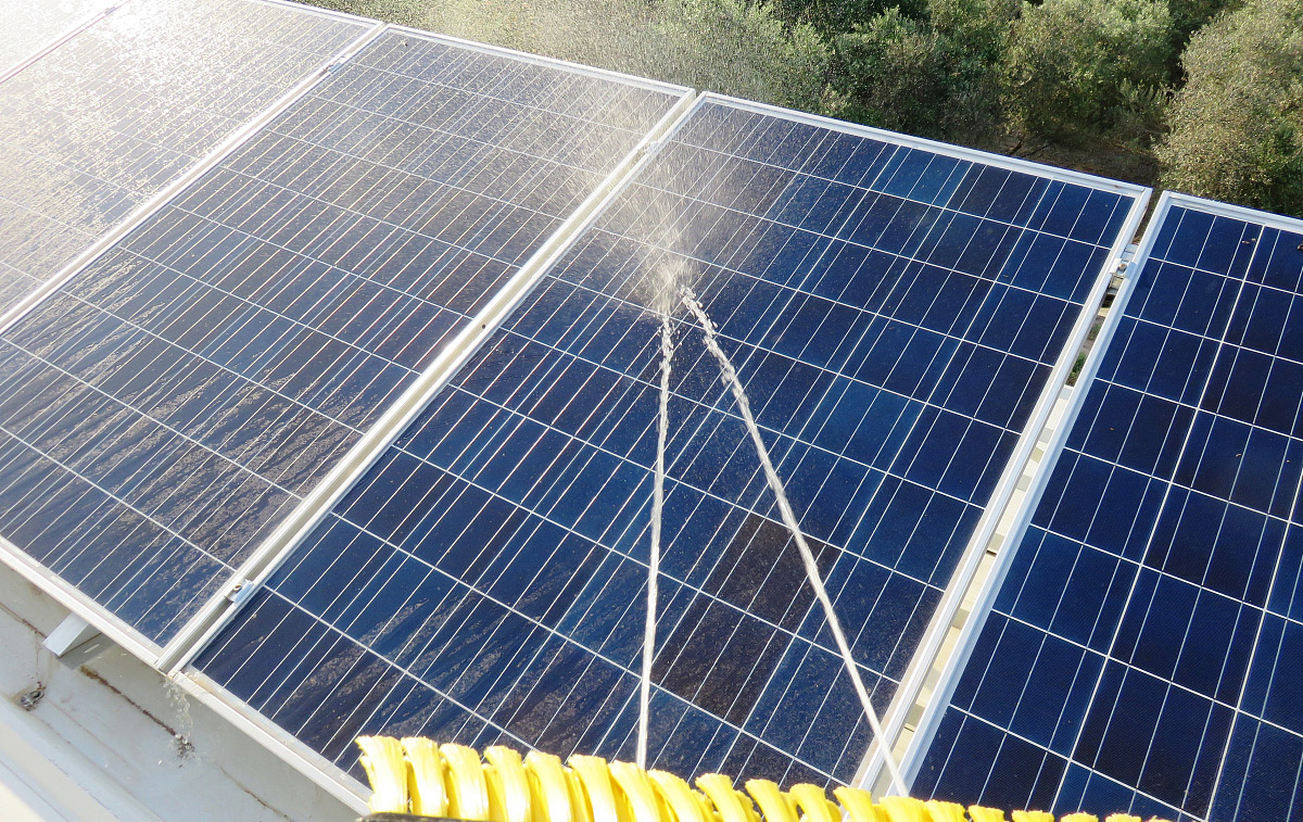 如果表面只是有灰塵、沙子、泥塊等顆粒狀污染物,用高壓水槍將顆粒物沖走,再用軟毛刷刷洗,避免顆粒物粘在電板上。